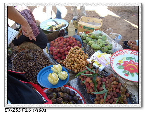 結束馬來湖的行程,順道在附近的攤販逛逛。有一些水果、炸蟋蟀。蟋蟀是經由炸過,可以直接食用。