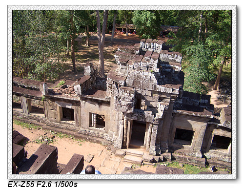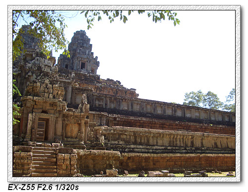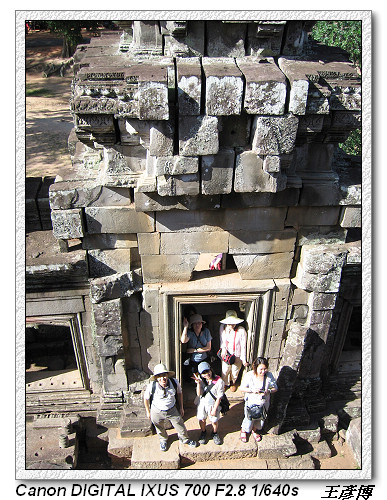 目前來到這一區是屬於大吳哥城(Angkor Thom),大吳哥城佔地九平方公里,為四邊各為三公里的正方形王城,周圍有寬一百公尺的護城河,是由人工挖掘建造。大吳哥城有五個城門(20m 高),東西南北各開一城門,另外,在東門北側再開一個城門。其中一個是勝利之門,只要打贏仗,就從這個門進去。大吳哥城是Jayavarman七世國王所建的國都,是吳哥王朝最輝煌的時代。
