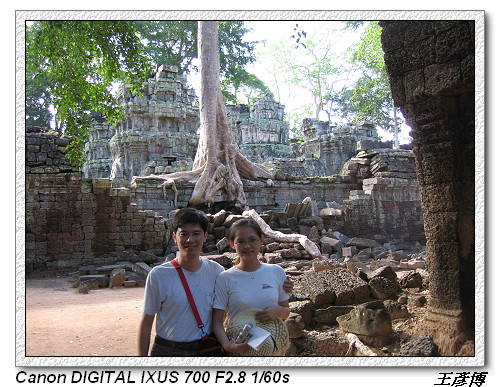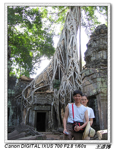 塔普倫神廟,因為古墓奇兵Tombraider電影取景而聲名大噪。建於12世紀末公元1186年,尊奉婆羅門教及佛教。經過五百多年荒漠,有卡波克樹Kapok(蛇樹)盤節在圍牆廟門口。相傳是加亞巴爾曼七世為紀念其母后所建,又稱『母廟』,採巴揚式建築風格,廟內如迷宮一樣,東門進入有舞者長廊。