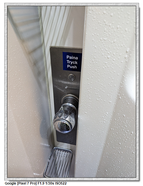 ▼【淋浴水是按壓式,按一次可以出水幾分鐘,熱水不算熱,還可以接受】