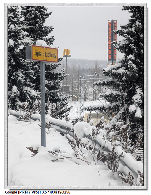在羅瓦涅米,我們沒買公車日票,所以打算用走的走到市區。到市區有個目的,就是要找追極光團,網路上有推薦一家旅行社。還有找後天破冰船的上車點。