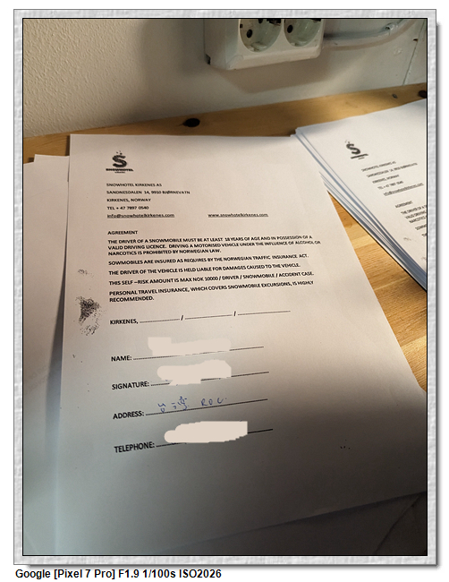 抵達Snowhotel後,領隊帶我們到另一家小木屋換裝,換裝前有詢問是否有駕照,我們表明有駕照,也沒查看駕照,然後就簽屬一份單子,大概就是說騎乘雪地摩托車要有駕照,然後有保險等等的聲明。