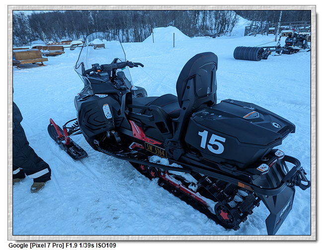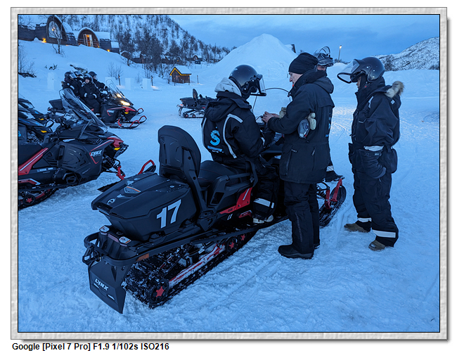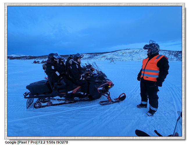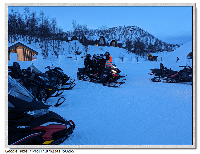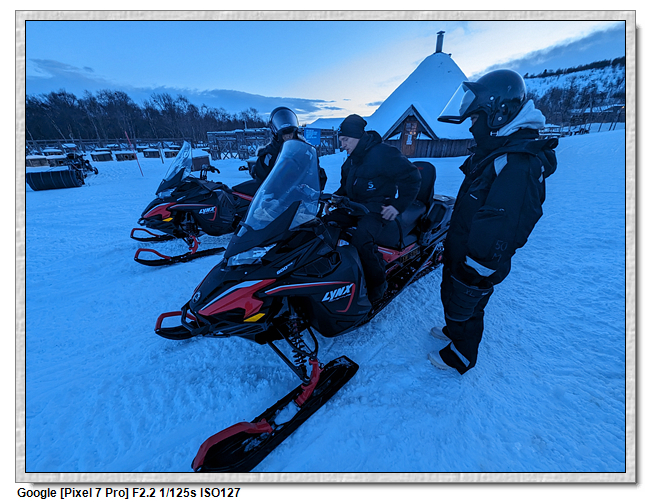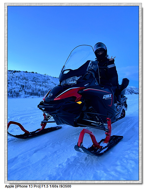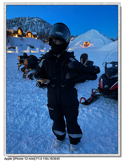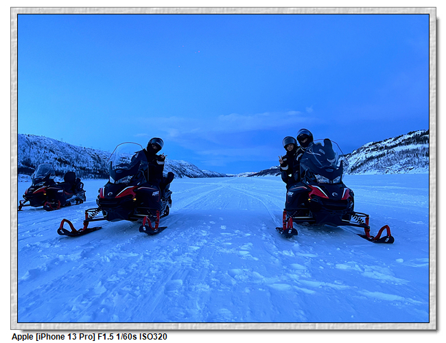 今天有體驗雪地摩托車的活動(2小時),昨天導遊有提到雪地摩托車,他覺得騎雪地摩托車很無聊,就一直騎,也沒做甚麼,我們只有傻笑,因為我們已經預約了。