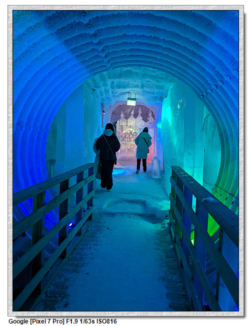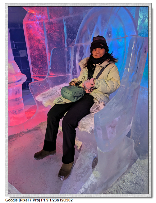 在櫃檯詢問接駁車時間時,因為還有點時間,櫃台建議可以參觀冰屋及哈士奇農場,原來冰屋可以免費參觀,我們就跑去參觀冰屋。