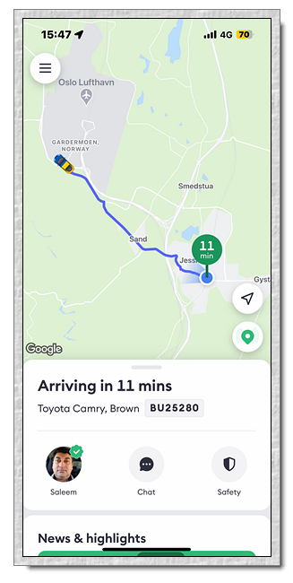 UBER 叫不到車,公車不能搭,正煩惱要怎麼處理時,小羽找到當地使用的叫車 App(Bolt),但 App 需要手機認證,小羽媽找小哞幫忙收簡訊,發了兩個App (叫車以及 ruter ),結果只有叫車 App 有回應簡訊,也順利用 App 叫到計程車了。