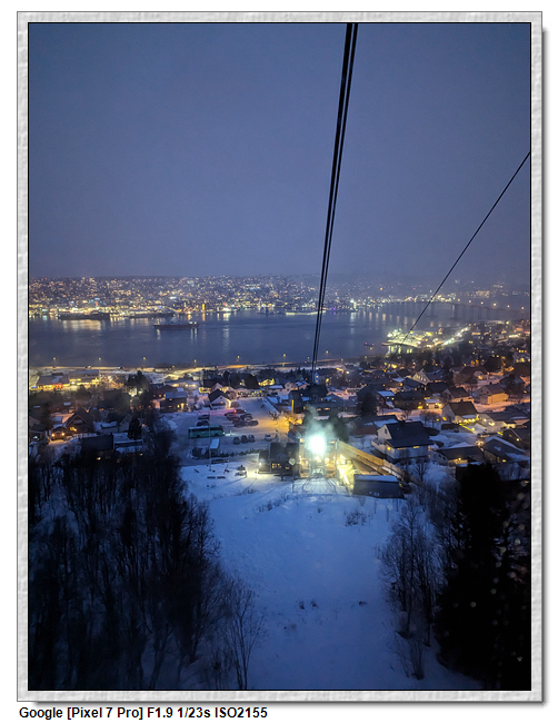 特羅姆瑟纜車往返於Tromsdalen島的Solliveien與Storsteinen山頂之間(海拔421米),單程4分鐘。特羅姆瑟纜車一共就兩個車廂,分別被命名為"海豹"和"北極熊",分別能容納28名遊客。