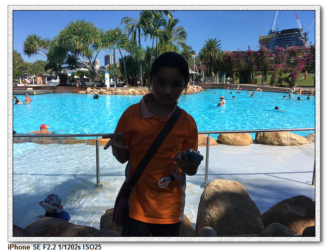 南岸公園有一個很特別的地方,是有座沙灘游泳池,太神奇了。