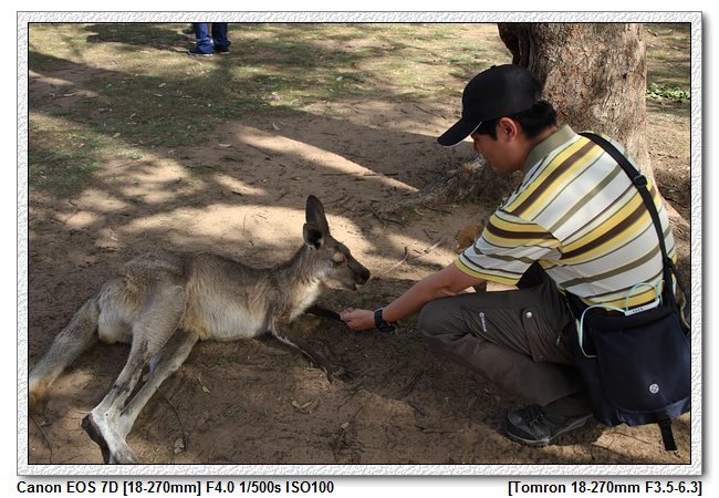 最後袋鼠飼料沒吃完,我們決定帶到外面,看看有沒有機會餵野生袋鼠。