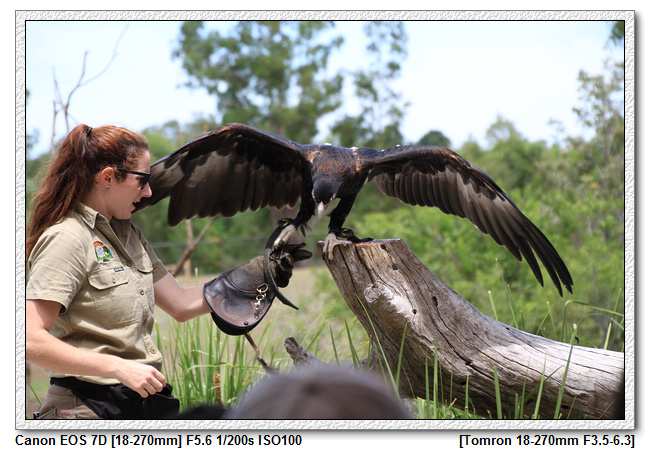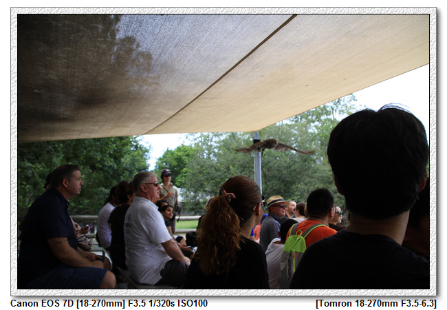 這裡的猛禽秀很讓人印象深刻,在台灣,猛禽大概都是讓飼育員停在手上,然後讓遊客拍照。這裡就不一樣了,在開始之前,解說員強烈建議遊客就坐後就不要亂動,接下來的表演就可感受到為何不能亂移動了。