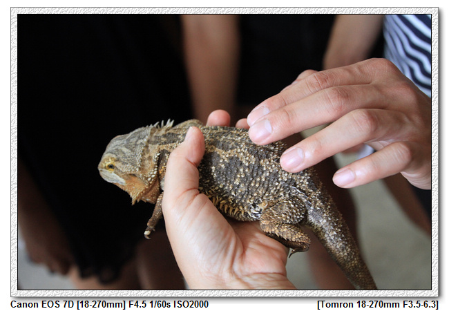 ▼【排隊時,有個飼育員身上有隻蜥蜴,大家開始圍觀觸摸】