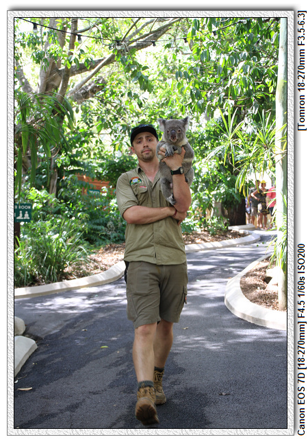 說是擁抱無尾熊,其實只是限制擺個姿勢讓無尾熊趴在身上,根本不算擁抱。只要姿勢一不對,旁邊的飼育員就會一直說no,no,然後把熊抱走。