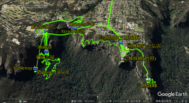 Skyway東站,有個步道可通往三姊妹峰(回聲岬)以及Katoomba瀑布,其實搭公車也可以抵達,不過大部分的人都是走步道欣賞風景。