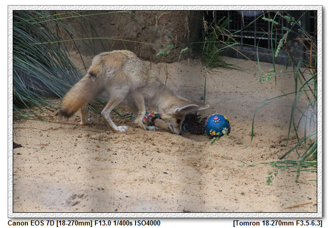 ▼【飼育員把食物放進球裡,邊滾球食物就會掉出來】