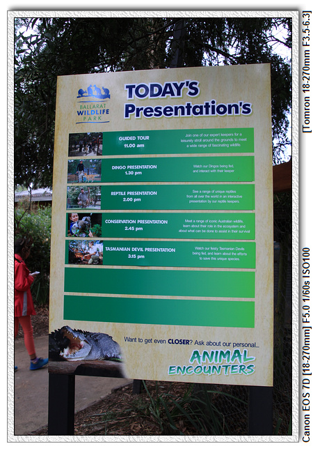 | 1.前往巴拉瑞特 | 2.巴拉瑞特野生動物園 | 3.動物園導覽 | 4.午餐&鳥園 | 5.爬蟲表演 | 6.親近無尾熊 |