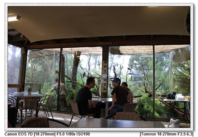 巴拉瑞特野生動物園真的不大,唯一一個可以用餐的地方是在出入口的隔壁,一進去之後,不算小的空間除了是餐廳之外,同時也是觀賞鳥類的地方,空間的利用很不錯。