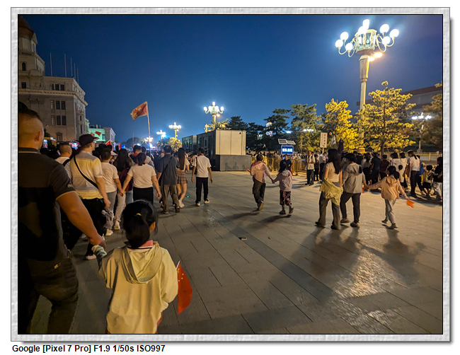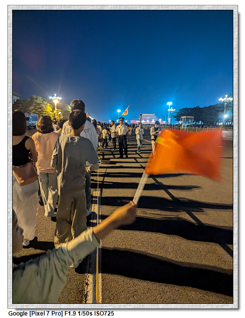 所有旅客都接上車後,遊覽車便載我們至天安門廣場很遠的附近下車,之後導遊開始帶我們徒步前往天安門廣場。越接近廣場,人潮開始湧現,大致上看起來都是跟團的遊客(散客應該沒有人想早起升旗吧~),越走人潮越多, 比大甲媽祖遶境的人潮還多。走著走著,突然看到同團遊客手裡多了一些國旗,不知從哪生出來的,該不會早有準備?真是愛國啊~我們在台灣升旗都不會自己準備國旗。
