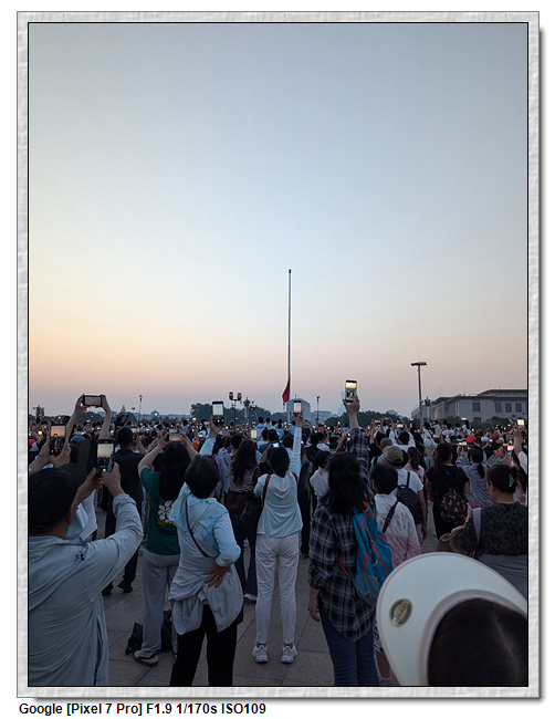 其實升旗根本就看不到,前面一堆人拍照,只看到微微的人頭移動,然後中共的國旗就升上去了。小羽爸覺得這應該是每個北京旅遊團必要規定行程,有點大內宣的感覺。