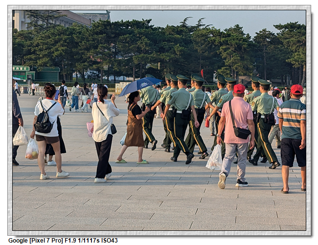 準備進入廣場時,導遊開始整隊(印象中沒有安檢),公安這時會開始點人數,看看有沒有符合報團人數。進入廣場後宣布集合地點後就自由活動了。