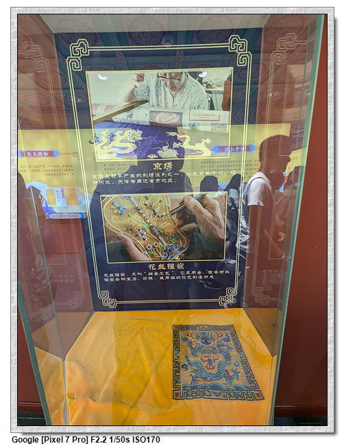 今天一早,就是旅行社安排的購物行程,龍脈九號特產店。就導遊的說法,這間龍脈九號原本是宮廷篩選貢品的集中地,各地方的貢品會集中在這裡,經過官員的篩選後才會送進紫禁城。之後這裡被改建成非物質文化遺產保護有限公司,提供商品給遊客。