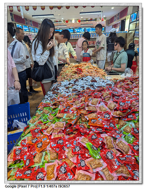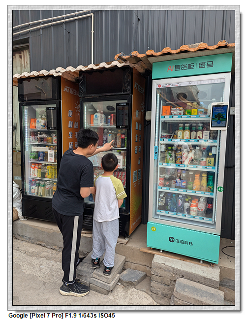 在等待大家集合時,小羽爸看到導遊在旁邊的販賣機購物,這個販賣機很神奇,一般的販賣機都是先投幣or刷碼,然後按鈕選商品,商品掉落後就會扣款。這邊的販賣機事先刷臉or掃碼,然後開門拿商品,關門後就扣款,重點是這樣的動作系統知道你拿的是甚麼東西,才扣款多少錢,真是厲害的技術。