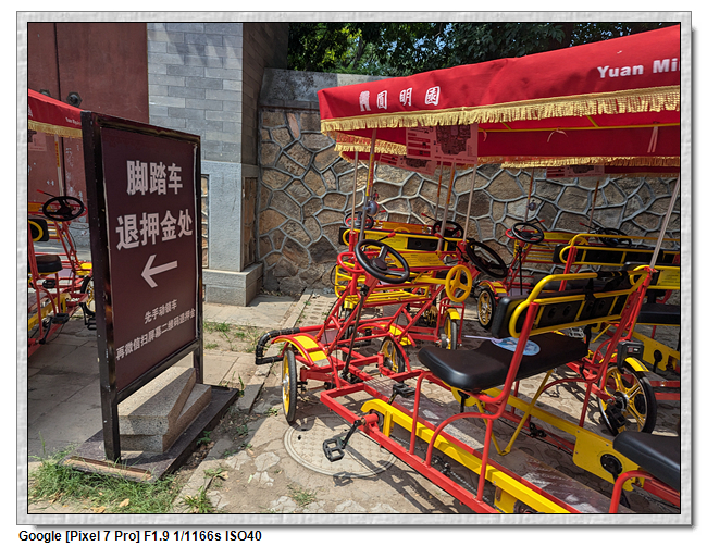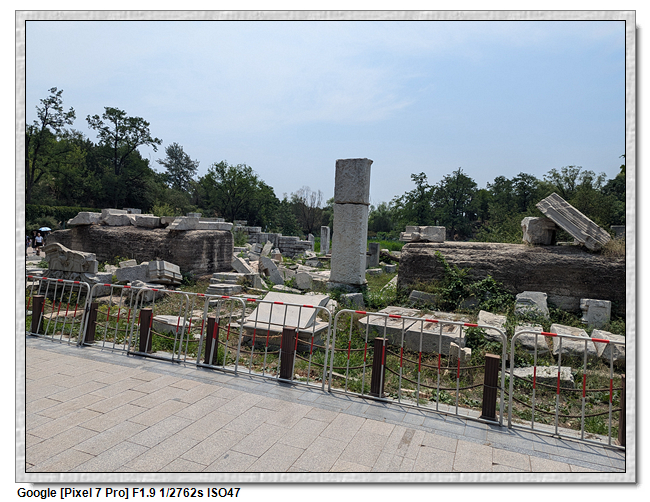 在這裡以兩個景點,一個就是參觀圓明園,另一個就是去清華大學門口拍照,小朋友會有穿學士服的照片,不過導遊說,那些衣服都沒洗過,有點髒。不過最後我們也沒去清華大學門口拍照,因為時間不夠,逛完圓明園都壓線了。