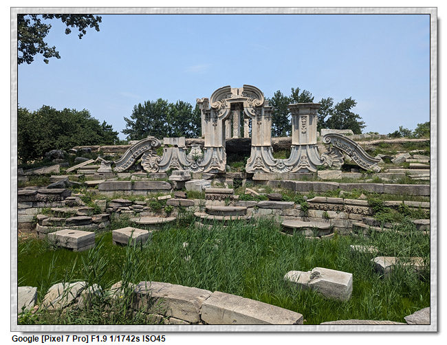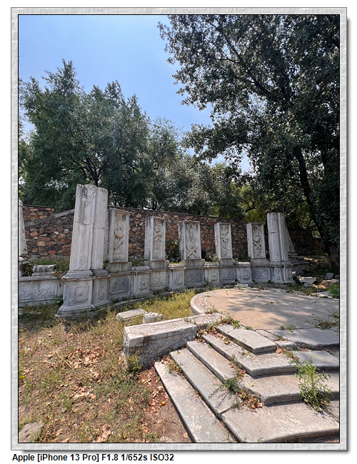 海晏堂遺址,三合土高台前有一個3塊巨石刻做的蚌殼,這個大蚌殼就像一朵碩大無比的蓮花,這便是當年“海晏堂”的西門。這座洋樓一反中國皇家建築的傳統,坐東朝西,因此西門即為正門。