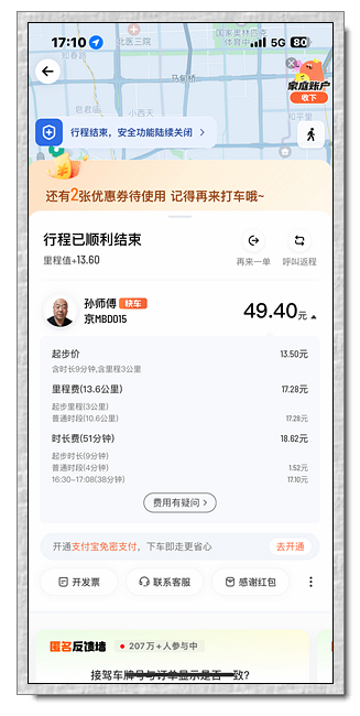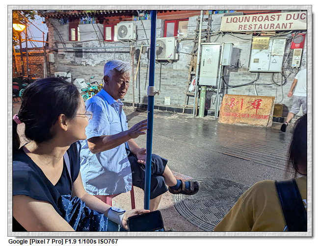 吃完烤鴨就要回酒店了,一樣叫了滴滴打車,在等車的過程中,旁邊有位住附近的老伯伯在乘涼,於是就聊起天來,得知北京最舒服的天氣是在五六月,涼爽不熱,七八月很熱,且會有午後雨。也沒聊很多,網約車就到了。
