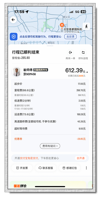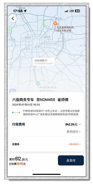 ▼【抵達首都機場時已經17:58,我們搭的網約車】