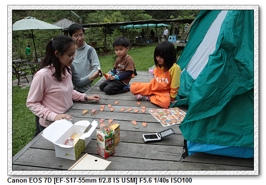 本來露營是要自己準備晚餐,不過因為這個營區很特別,有合菜可以選擇,生性懶惰的一群人,當然是採用合菜方案,所以整個下午大家都在閒晃等晚餐。