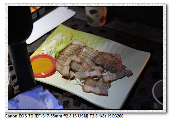 晚上的7:00~8:00是螢火蟲時間,可是山豬肉還沒煮好,所以老闆讓我們先去看螢火蟲,之後送上當宵夜。(突然發現養生湯忘了拍了~)