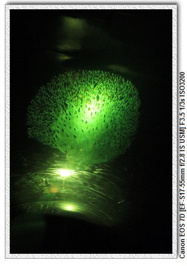 夜探珊瑚王國館也是這次夜宿的主題之一。一般都是白天參觀珊瑚館,珊瑚都是呈現光鮮亮麗的形貌。這次就是來看看晚上珊瑚的樣子。