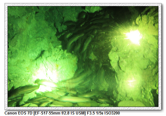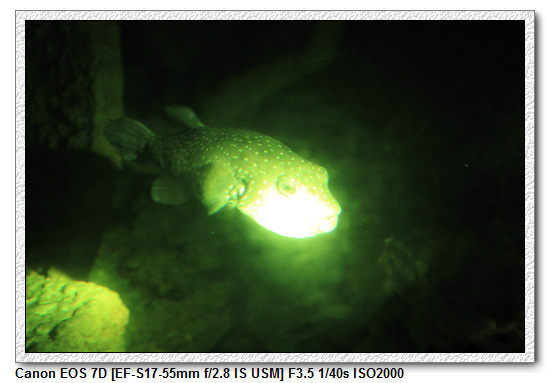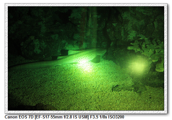 晚上的珊瑚館很特別,跟白天的珊瑚館呈現完全不一樣的景色,其實大部分都是躲起來睡覺。尤其是花園鰻,白天像是蟲一樣從沙子冒出,晚上則空空不見一物。還有白鯨,一頭窩在上方水面處睡覺(這樣睡最輕鬆,直接換氣),另一頭則是一直繞著水池游(其實是在睡覺),每隔一段時間浮出水面換氣,白鯨睡覺就是這兩種方式。白鯨是分左右腦不同時間睡覺,左腦休息時,右腦負責提醒要換氣。