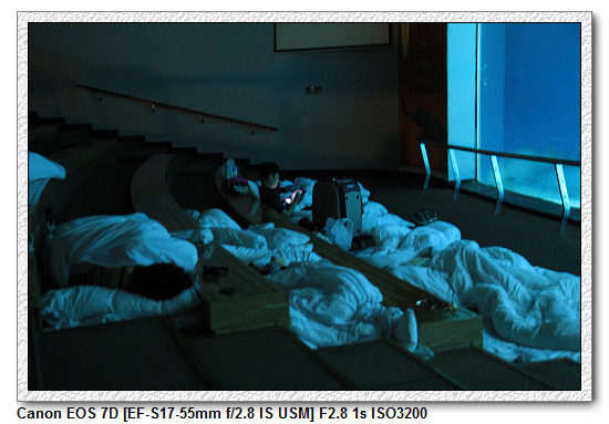 今晚就是睡在大洋池前方,其實最台灣水域館的地毯處都是可以睡的。不過就屬大洋池這區最受歡迎。