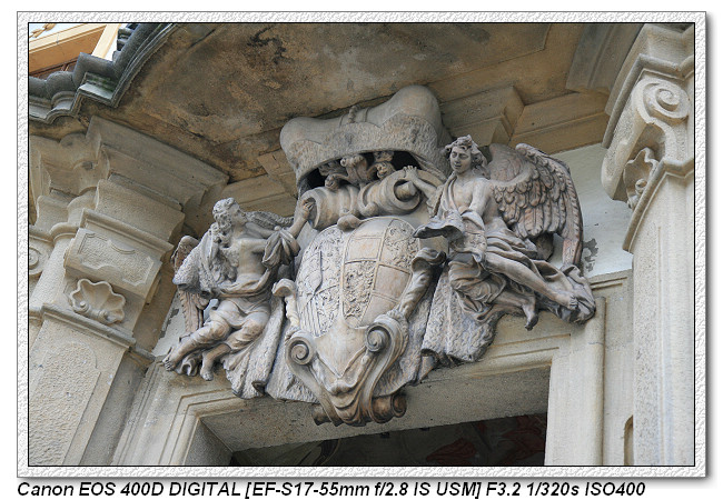 庭院中有隻獅子的雕像,獅子是代表波西米亞民族。而獅子腳上的小盾牌則是小國徽