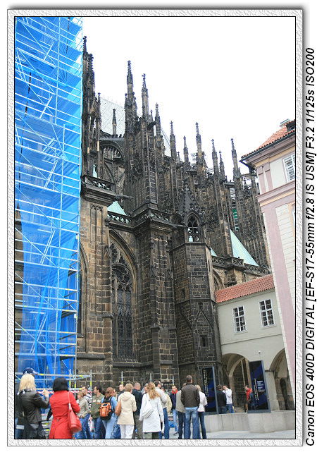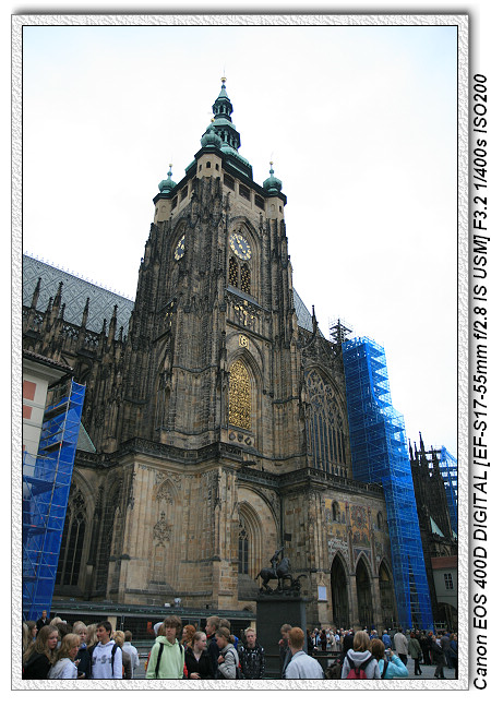 通過第一中庭之後,就是聖維塔教堂,前後用六百年的時間建完(1929年最後完工),屬於哥德式建築(外表高、尖、直),可惜目前正在整修中。