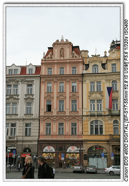 石羔羊之家,經典波西米亞文藝復興是民房。除了一樓保持哥德式建築拱型走廊之外,2樓以上牆面裝飾、窗台形狀以致於接近屋頂的三角階梯緣的山牆都以文藝復興建築行式為基調,融入波西米亞特色的作品。正門右上有牧羊女與獨角羔羊浮雕。