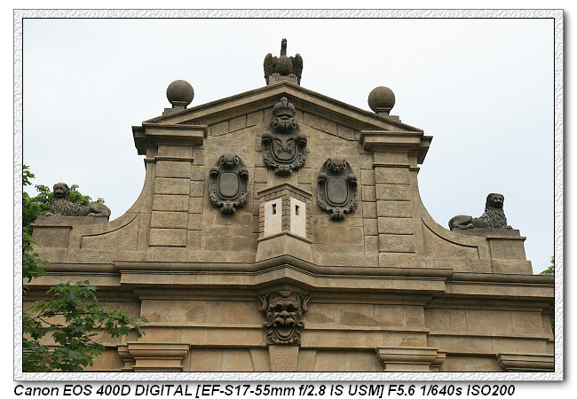 ▼【高城城門有兩種風格,上面是巴洛克式,下面是圓拱式,有紅色圍牆】