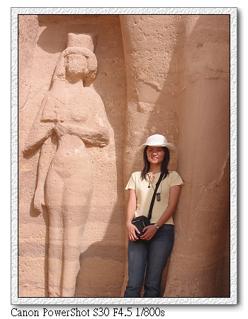 哈托爾神殿小腿旁的小妻(拉美西斯二世的妻群),也都比人高。