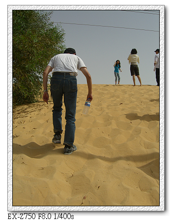 每個來埃及的遊客,導遊都會帶領到自己覺得漂亮的地方採砂。不過我們的導遊卻帶我們到一個路邊,然後叫我們去採砂。原因是~~~他覺得這裡的砂比較漂亮且乾淨,而且還有聖甲蟲喔~可惜那天沒抓到,可能是太熱了,都躲起來。
