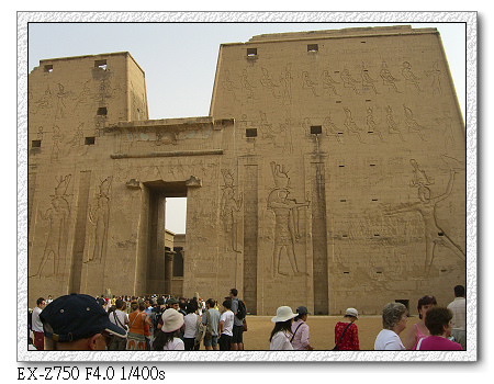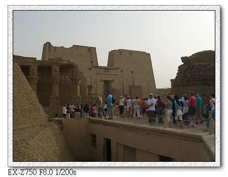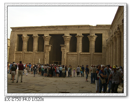 荷魯斯神殿售票亭等待買票。售票員還沒開門,到達時已經是大排長龍了。不過最後江浩是第三位拿到票入場的(他有人脈,當時他沒排隊,一直跟我們在旁邊聊天,突然手上就有票了~真是會利用關係~)