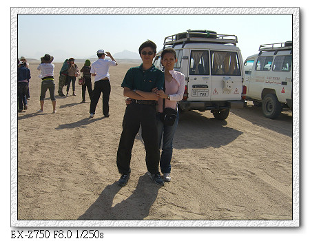 這是我們搭乘的吉普車。司機開的很快(時速約60),沙漠之路顛頗,一路上搖搖晃晃,很像在坐遊樂場的飛車。