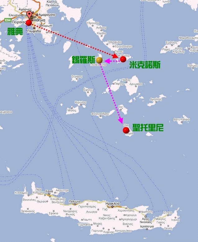 一到港口進巷子不久就看到這大建築物,我們要一直逛到約九點多才有船往聖托尼里。