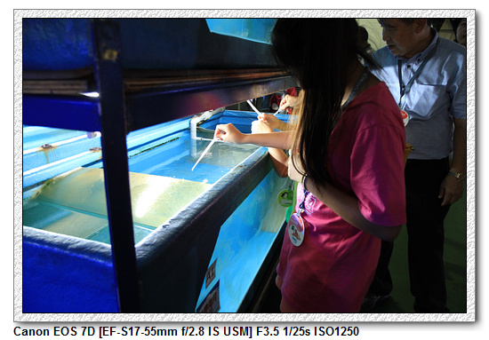【餵食豐年蝦,餵食時要小心不能搓到水母,不然水母會受傷後自殺】