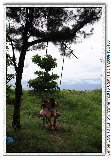 接著在民宿外稍微走一走(沒辦法通往最近的海邊,只讓小羽、小榆坐坐盪鞦韆),就打包行李,離開了。(沒能在海邊玩水,好像就沒達到當初小羽媽選擇這民宿的目的了)