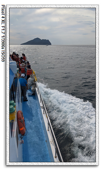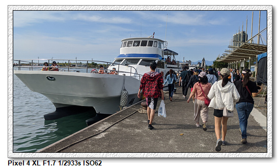 本來以為會等一陣子,很快的就開始集合大家要登船,一開始以為是附近的船隻,沒想到帶大家走了漁港半圈,在對角處登船,還沒登島先練腳力。