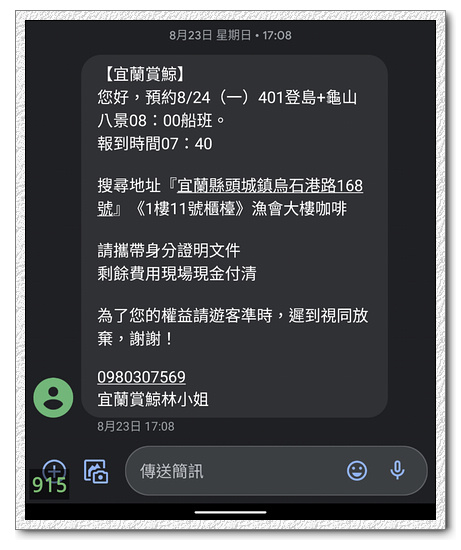 前晚的簡訊通知隔天的集合時間及地點,一早起來整理行李後退房+採買早餐及零食,就直接前往集合處。