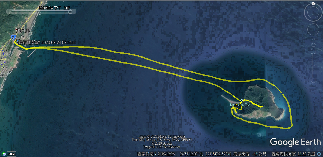 從南岸碼頭上船後,開始環繞龜山島的行程。船長開著蘭鯨號繞行龜山島一周+解說。