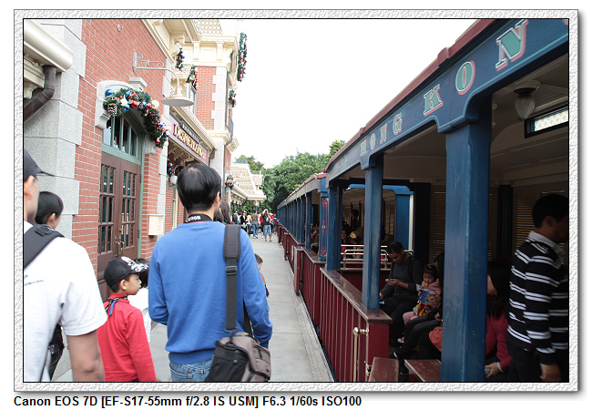 這個會繞迪士尼樂園一圈的觀光火車,只有兩個站,一個是美國小鎮大街站,另一個是幻想世界站,剛剛好在對角。不過因為我們純粹坐火車,所以在幻想世界站也沒下車,坐了一圈回來。