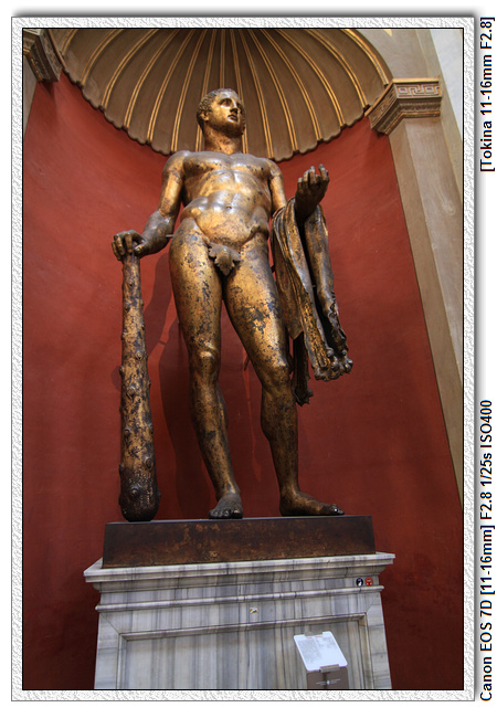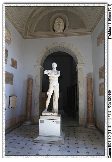 接著來到動物廳(Hall of Animals),中間為希臘神話的英雄Meleager,左邊是他的獵犬,右邊是他剛殺死的野豬。不過距離很遠,拍起來小小的。