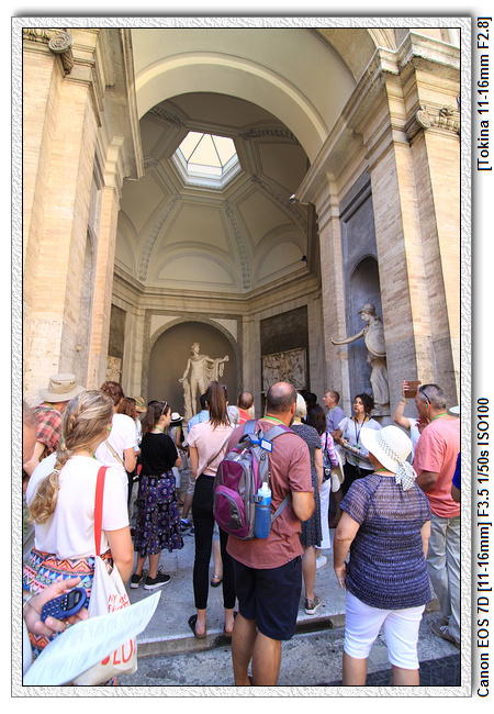 來到皮歐克里門提諾博物館(Museo Pio Clementino)裡的八角庭園(Cortile Ottagono)及圓廳(Round Room),八角庭園中最著名的就是Laocoön 勞孔雕像群,講述史詩《埃涅阿斯紀》(Aeneid)故事,以及貝爾維德雷的阿波羅雕像。